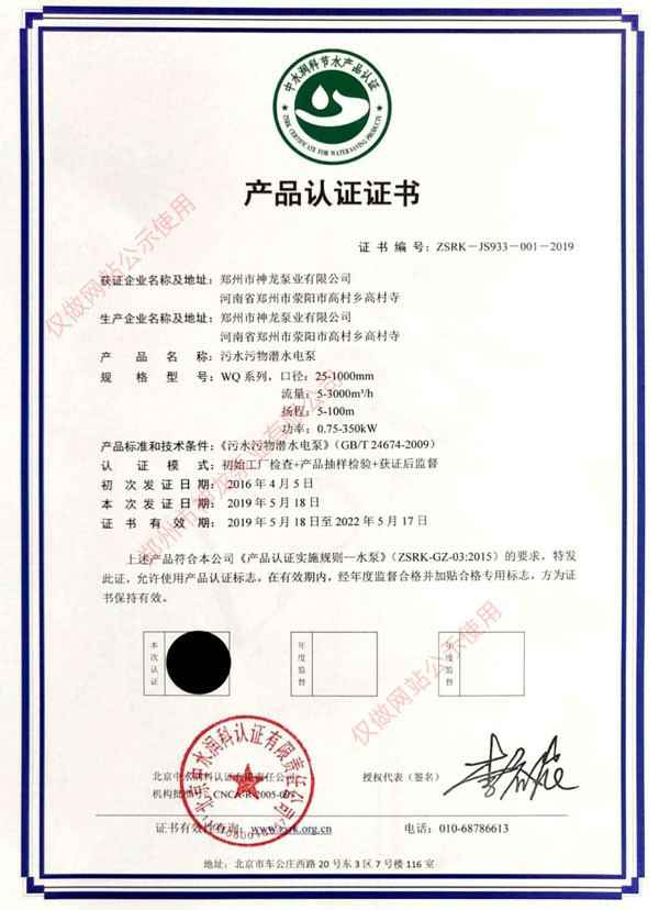 产品认证证书